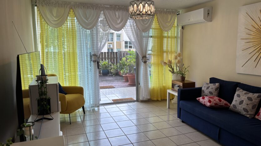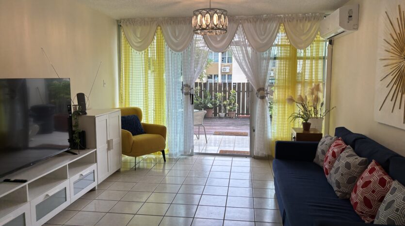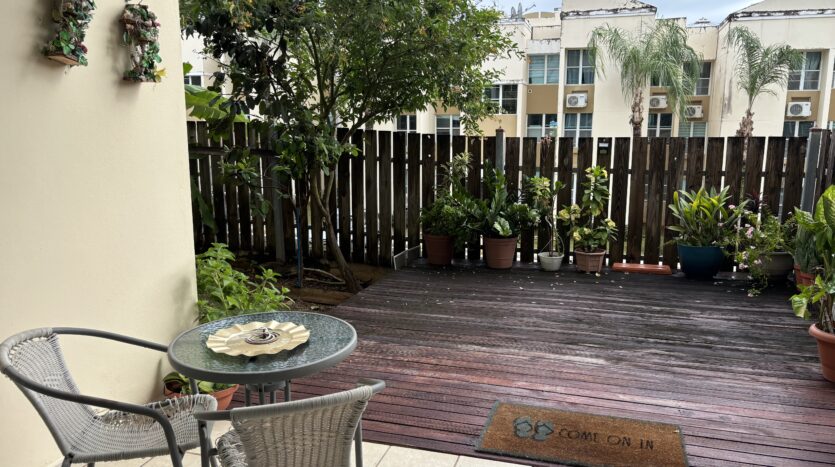 Excelente y centrico apartamento garden (primer piso) con amplio patio y deck en madera, balcon, baños y cocina remodelados. Complejo cuenta con piscina con sus baños, area de reuniones, estacionamientos de servicio y parque pasivo. Complex Facilities: Control Gate, Swimming Pool w/Bathrooms Facilities, Meeting Area, Extra Parkings & Playground. El Condominio se encuentra entre la Avenida Park Garden y la calle Frontera, a 10 minutos del Aeropuerto Internacional Luis Muñoz Marin, a 13 minutos de la Universidad de PR, a 8 minutos del Mall of San Juan y a 15 minutos de Plaza Las Americas. Pronto Proyecto de Pintura del Condominio aprobado! No espere mas, llame ahora para mas informacion y citas al 787-375-7759 o envie un correo electronico con su nombre y telefono a as@angiesantana.com